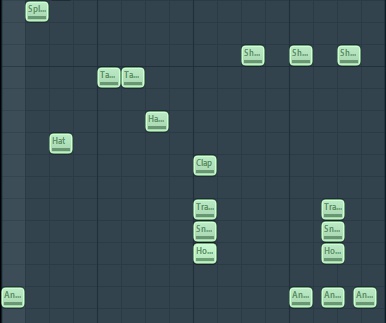 到現(xiàn)在我們對(duì)節(jié)奏已經(jīng)有了很多不同的想法,這些想法可以被運(yùn)用在構(gòu)建Dub-step鼓組的任何地方。而在Dub-step中,除了底鼓與軍鼓之外,我們還可以增加一些額外的Hi-hats,Shakers,Tambourines,Cymbals,或是其它的一些聲音效果。 其實(shí),想要得到連奏的感覺(jué),最簡(jiǎn)單的方法是:添加進(jìn)一些跟底鼓和軍鼓形成反差的吊擦的聲音或是打擊樂(lè)器的聲音。