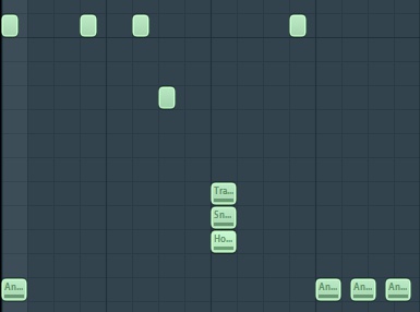 怎么在添加進(jìn)一些變化的同時(shí),又要保持鼓組的稀疏感?一種最簡(jiǎn)單的方法就是使用裝飾音。傳統(tǒng)意義上,裝飾音是一些在基本音符后快速?gòu)椬嗟囊舴H绻阆朐阡撉俅爸辛炕@些修飾音符,你通常需要使用32分之一或更細(xì)的量化設(shè)置。如果我們?cè)?40Bpm曲速下將16分音符作為32分音符使用,那么我們鼓組的節(jié)奏聽(tīng)起來(lái)就會(huì)感覺(jué)像是70Bpm的曲速。不過(guò)這種特殊方法,可以讓我們?cè)谑鼓切┎辉试S使用32分音符的音頻工作站里使用32分音符。下面是一些Dub-step制作過(guò)程中運(yùn)用裝飾音的例子,如圖2、3、4。