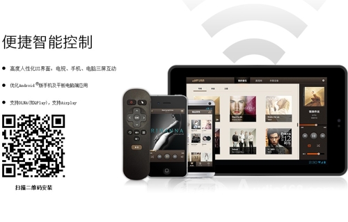 dFiMTM 系統內置海量授權高保真數字音樂內容,用戶在網絡環境下登陸平臺,連接家庭音響設備,同時通過dFiMTM開發的專有UI界面(電視、電腦、手機三屏互動),即可在可視化狀態下極其方便的搜索、試聽、播放和管理個人高保真音樂內容