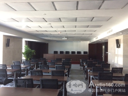 講臺式會議室主席臺兩邊吊掛安裝多臺COMMUNITY IHP-1296P和IHP-1566揚聲器;視頻會議室和小會議室則使用Community ENT212和ENT206二分頻線性音柱覆蓋整個觀眾席。