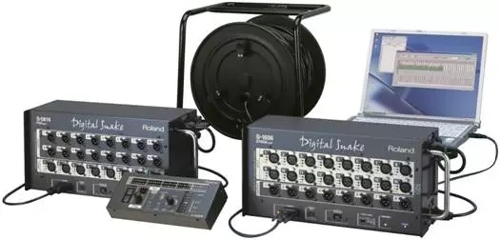 這套純數字化的系統是基于REAC (Roland Ethernet Audio Communication,即Roland以太網音頻傳輸技術)技術開發的,它使用cat5e網線替代傳統的模擬音頻線纜作為音頻信號傳輸的介質,解決了噪音的問題,體積也非常小巧。它的使用非常簡單,只要使用一條輕便的cat5e網線連接到數字蛇接口單元(接口單元可選,最高擴展至80輸入),能夠在幾分鐘內連接完畢,這對于移動應用和企業活動來說非常理想。