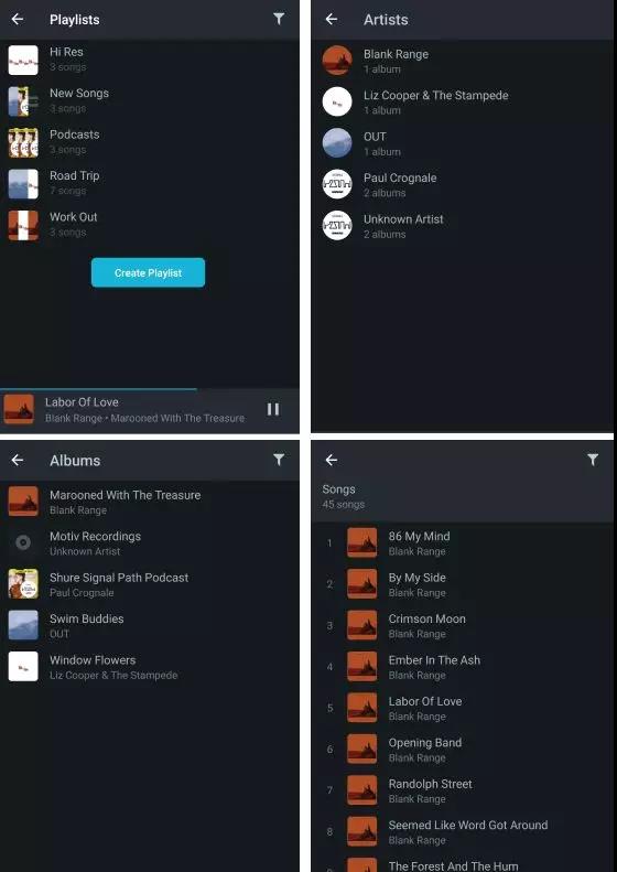 可以導入和播放多種高解析度和標準音頻格式的文件類型,包括MP3, FLAC, WAV, AAC, ALAC, M4A, MKV和OGG Vorbis (視平臺而定)
