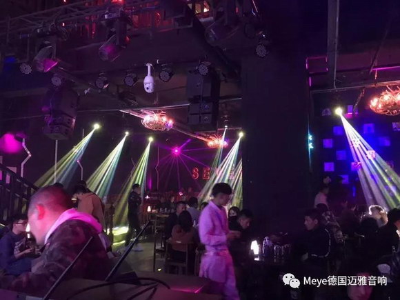 為了讓SEVEN BAR聲音在風情街獨樹一幟。Meye團隊在揚聲器使用和布局經過了細致的研究,酒吧上下兩層分區設置,一層酒吧區放置GL-8線陣作為主場主擴聲器,同時配置雙十八寸B28超低揚聲器,分散布置在酒吧各個方向,帶來了強勁的和震撼效果。另外二樓休閑區采用分散式擴音方式,布置了八只ME-12作為補聲揚聲器,讓二樓消費者聽到真實悅耳的聲音。