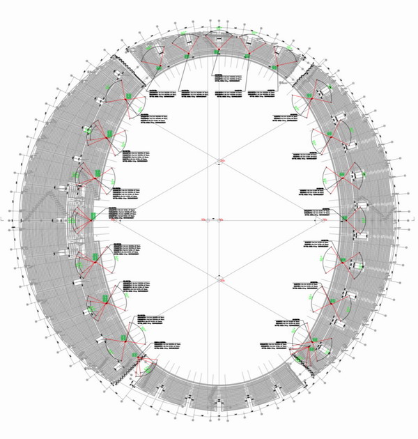 擴聲控制室位于體育場西北角,并在其他四個拐角設置3間功放機房,用于布置主擴揚聲器系統相關的功率放大器設備,這樣可以有效縮短揚聲器線纜傳輸距離,降低信號衰減,保證主擴聲信號質量。