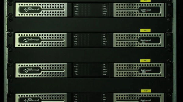 功率放大器全部采用Powersoft Quattrocanali 4804 DSP+DANTE數字功率放大器。擴聲控制室與功放機房之間采用光纖網絡音頻的方式進行遠距離傳輸,縮減模擬線路傳輸距離,降低線路損耗,有效提升系統內音頻信號的傳輸質量。
