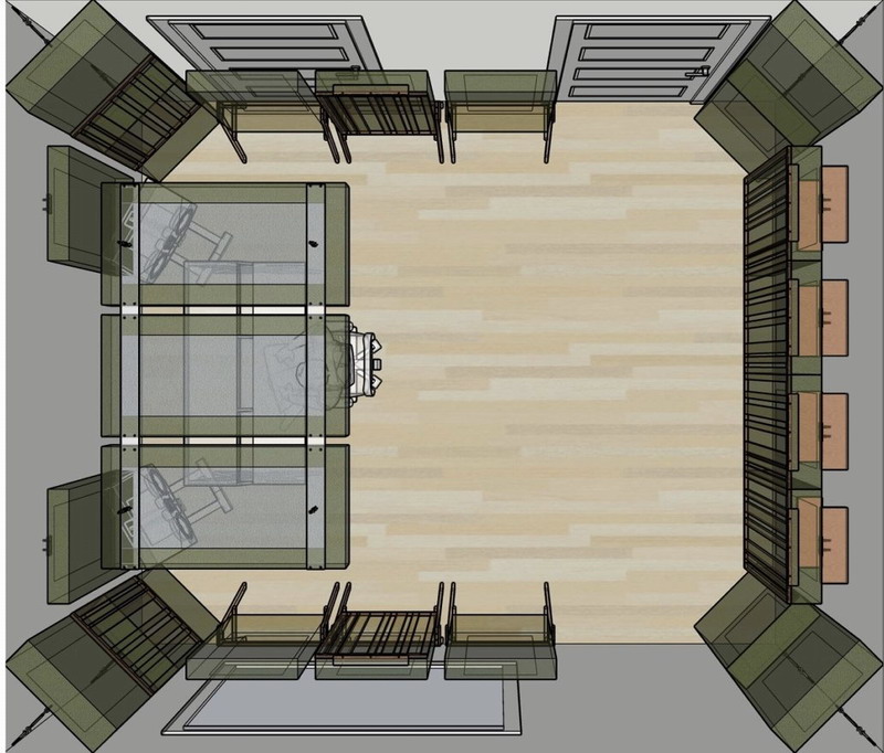 · 對于家庭工作室來說,經過這些設備設置后的聲學環境可以說是“夢中情房”——這是夢寐以求的配置。門和窗的位置仍然可以處理關鍵的早期反射點和大角落低音陷阱。需要注意的是,低音陷波器仍然采用 4' x 2' x 6.5” 低音陷阱面板進行處理,這些低音陷阱面板處于水平放置,可以大大增加了它們后面的空氣間隙,使其在低至 40 Hz 的頻率范圍內一直有效!天花板/墻角經過處理后,能提供更多的低頻衰減時間控制。