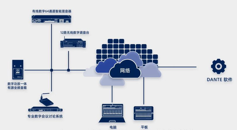 另外還有Relacart·力卡多年研發的Dante整體生態架構,囊括麥克風、智能混音器、會議系統、音響等,輕松就能組建一套優質的音頻系統,并能隨意進行擴展,以便適用于不同場合使用。