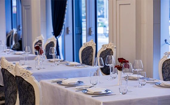 夢劇場對環境營造的追求近乎偏執。主理人深知,法式優雅不僅在于銀質刀叉與勃艮第紅酒的碰撞,更在于聲場與空間藝術的共振。餐廳內,巴洛克鏡框中陳列著具象派畫作,藏青色天鵝絨座椅旁,骨瓷茶杯泛著珍珠光澤,小提琴師即興演奏填補著空間的留白。