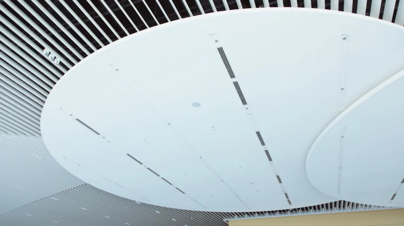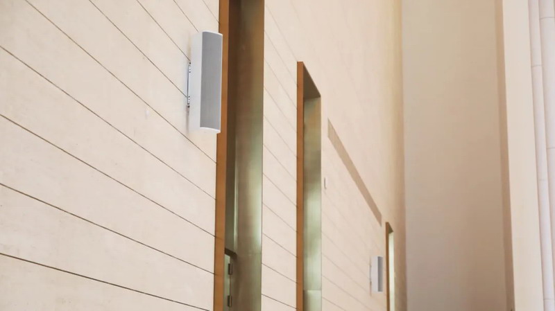一層握手廳采用的4只EAW AC6柱式揚(yáng)聲器壁掛安裝于墻面,通過EAW獨(dú)有的Resolution™ 2輔助設(shè)計(jì)軟件進(jìn)行專業(yè)聲學(xué)模擬分析,精準(zhǔn)確定了揚(yáng)聲器的安裝位置與高度參數(shù)。依托其搭載的自適應(yīng)性能技術(shù),成功克服了硬反射面多、混響時(shí)間長的聲學(xué)難題。這些揚(yáng)聲器不僅提供了卓越的語言清晰度,其白色外觀更與室內(nèi)裝修風(fēng)格完美融合,實(shí)現(xiàn)了功能與美學(xué)的統(tǒng)一。
