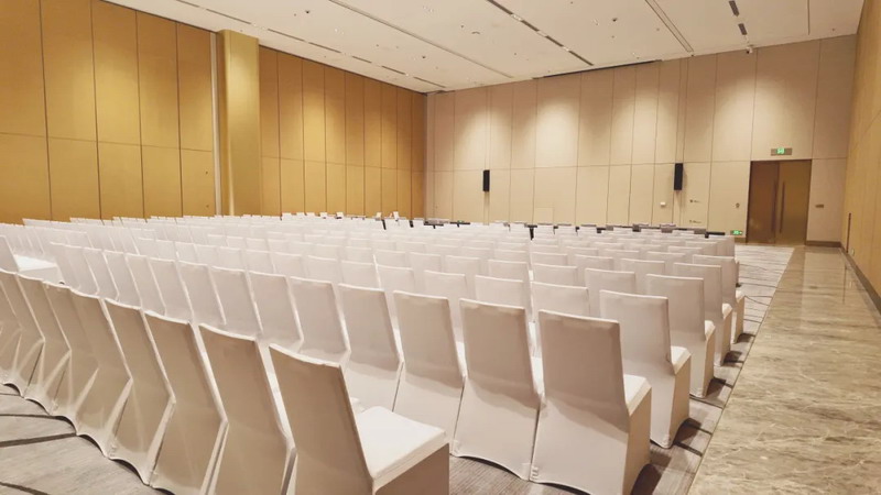 二層設(shè)有多間功能特殊的大中會(huì)議室,其中包括兩間850㎡可合二為一會(huì)議室、兩間1200㎡可三合一會(huì)議室及兩間1900㎡可三合一會(huì)議室(均具備靈活分割功能),同時(shí)還有三間350㎡獨(dú)立中會(huì)議室。針對這類空間因可變性產(chǎn)生的聲學(xué)需求動(dòng)態(tài)變化,易科團(tuán)隊(duì)量身定制了“主擴(kuò)預(yù)留+分廳補(bǔ)充”的混合部署方案。通過預(yù)先敷設(shè)自適應(yīng)揚(yáng)聲器線纜,結(jié)合EAW AC6揚(yáng)聲器的智能適配聲場的功能,系統(tǒng)可針對不同的使用場景,進(jìn)行覆蓋模式的快速轉(zhuǎn)換——無論會(huì)議室處于獨(dú)立使用、部分合并還是完全連通狀態(tài),都能實(shí)時(shí)調(diào)整聲學(xué)參數(shù),確保在任何使用模式下,聲場覆蓋均勻性與音質(zhì)清晰度都能達(dá)到最佳效果,完美滿足不同會(huì)議場景的聲學(xué)需求。